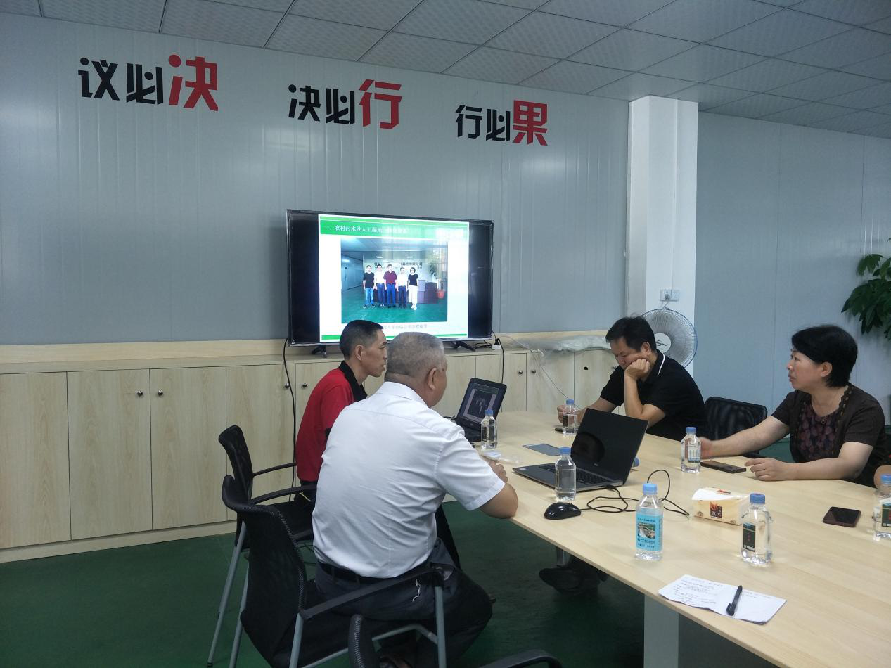 公司總經(jīng)理向羅部長(zhǎng)一行介紹分散一體化污水設(shè)備